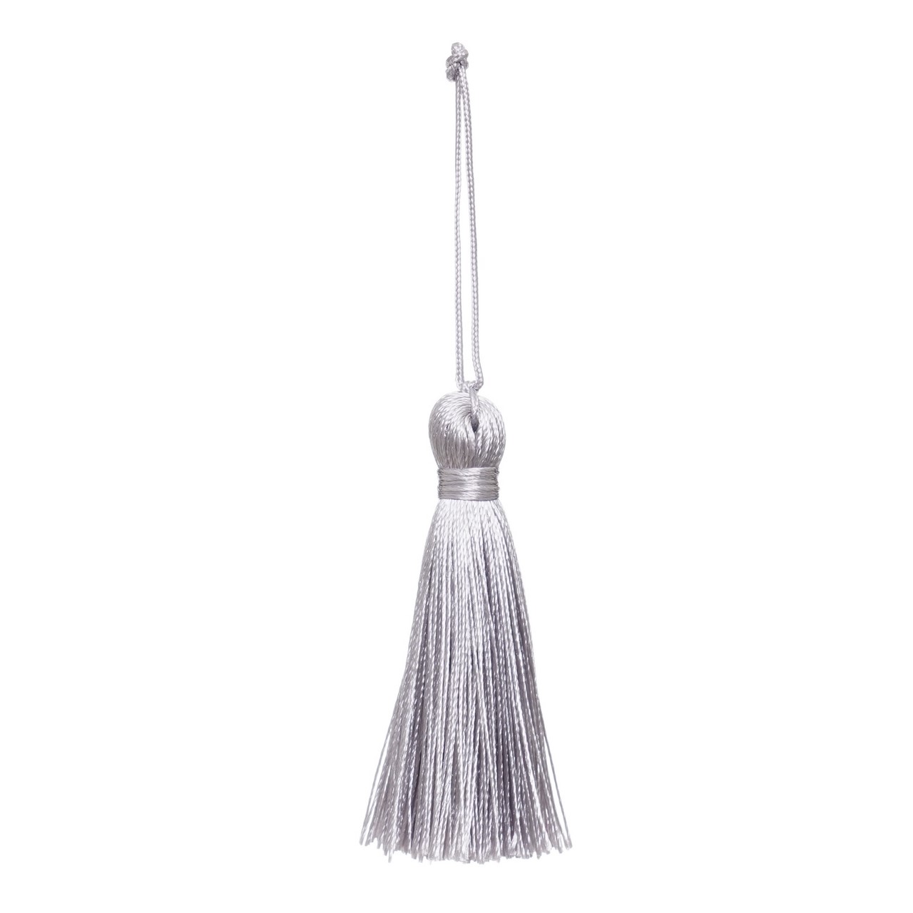 Klasyczny ręcznie wykonany chwost do upinania zasłon zakończony jedwabistym srebrnym włosem.